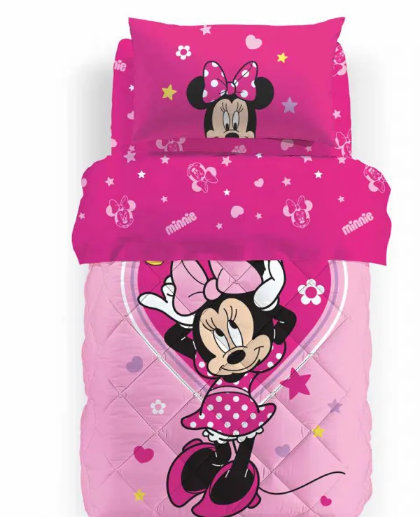 Caleffi presenta la trapunta singola Minnie Trendy in puro cotone. Questo delizioso set di biancheria da letto rosa Minnie è perfetto per aggiungere un tocco di fascino a qualsiasi camera da letto. Realizzato con cura, il set comprende un morbido cuscino rosa che completa la vivace trapunta rosa. Realizzato in cotone di alta qualità, questo set di biancheria da letto offre comfort e stile e rappresenta la scelta ideale per i fan di Minnie di tutte le età. Trasformate la vostra camera da letto in uno spazio magico con questo adorabile e accogliente set da letto.