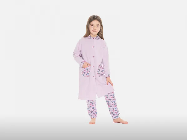 Questa adorabile immagine mostra una bambina che indossa un vivace set di pigiama Gary. Realizzato all'insegna del massimo comfort, il nostro pigiama è perfetto per bambini e bambine dai 3 anni in su. offre materiali di alta qualità, questo set assicura al vostro piccolo un sonno accogliente e tranquillo. Con il suo design affascinante e l'eccellente manifattura, il nostro set di pigiama viola è un must per la routine della nanna di ogni bambino.